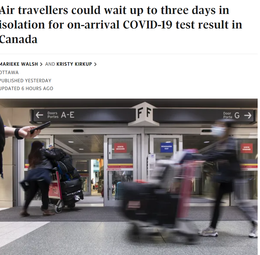 要知道,目前国外旅客要在加拿大接受检测到拿到结果,最长可达3天。这也就是说,一旦新政策开始生效,所有航空旅客可能要落地检测+隔离3天!