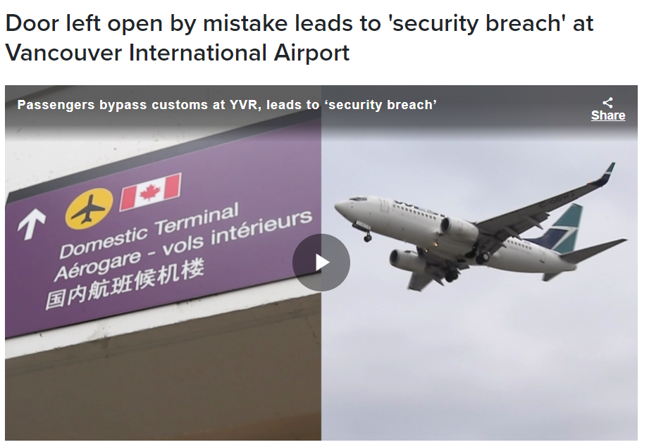 本周四(12月2日),YVR竟然爆出一架从美国飞往温哥华的航班开错舱门,全机乘客就这么未经清关,自由入境加拿大!