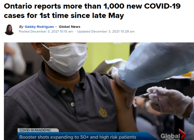 3日,最先发现新变种Omicron的加拿大省份,也是加拿大首例Omicron本地传播的安省,公布新增1031例新增,这是该省6个月来首次日增破千!