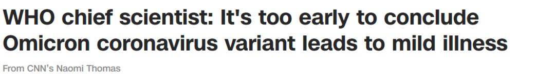 不过,对于这一观点,世界卫生组织WHO首席科学家Soumya Swaminathan今天表示,就目前的特征来看,新冠Omicron变种的传播力极强,但现在就说它只会导致轻症为时尚早!