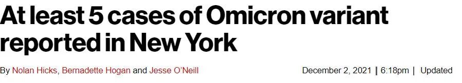 纽约州长霍楚(Kathy Hochul)和市长白思豪(Bill de Blasio)2日下午表示,目前纽约州已发现至少五例Omicron变种病毒感染者,其中四人在纽约市、一人在长岛确诊;
