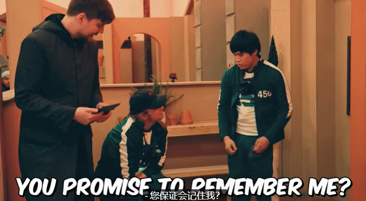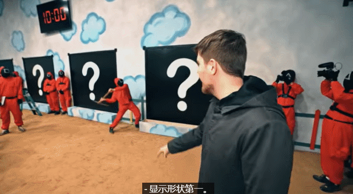 这里Mr Beast做了“本土化”处理,将“123木头人”改为了喊“红灯绿灯”,红灯停,绿灯走。