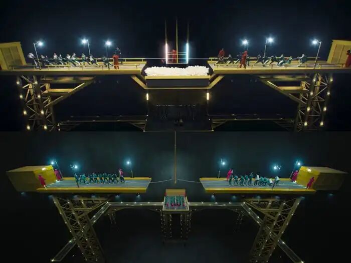 不过还有最有一关要过!这里Mr Beast做了个比较大的变动 ,把剧版复杂的鱿鱼游戏(据说是他们团队没看懂规则),变成简单的听音乐抢凳子,相信不少童鞋都玩过