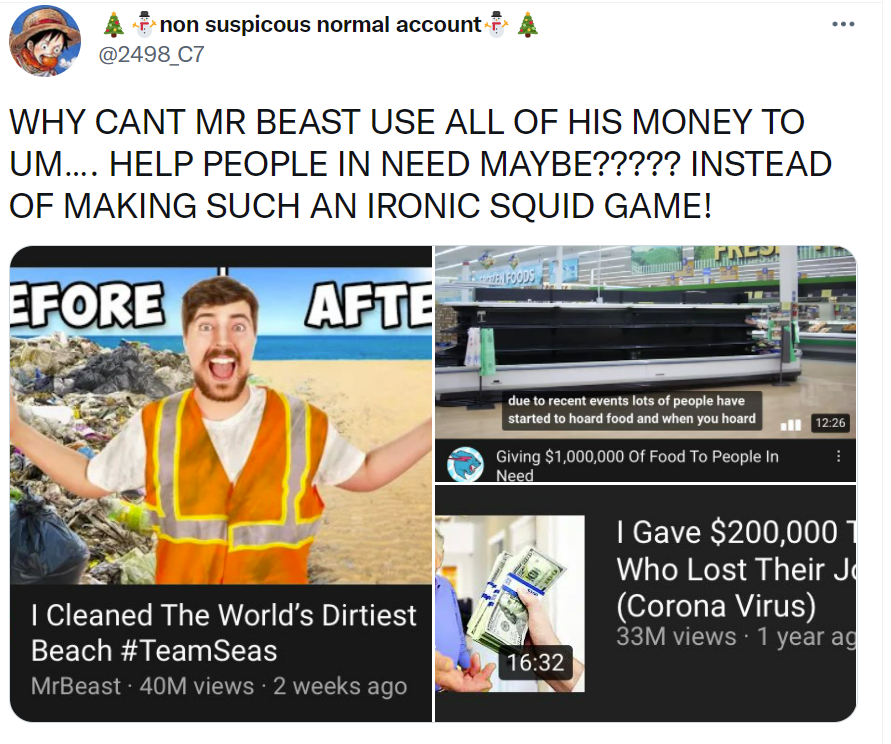 “为啥把钱花在无聊的鱿鱼游戏上?而不把这些钱捐给更多有需要的人?”