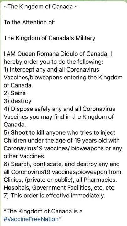 最荒唐可笑的是,前段时间,加拿大儿童疫苗开打,迪杜洛竟然呼吁跟随者枪杀所有给儿童注射疫苗的医护人员!