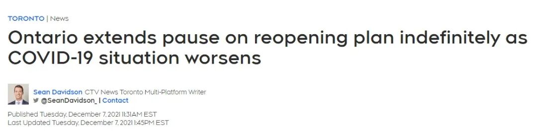 在今天(12月7日)的新闻发布会上,安省政府宣布将继续暂停解封,以检测省内的疫情形势,并了解更多有关Omicron变种的信息。但尚未给出取消限制的具体信息,解封计划将无限期推迟。