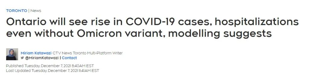 周二,安省发布的新模型数据显示,如果不增加疫苗接种率,且不采取进一步的公共卫生措施。安省的COVID-19病例和住院人数将继续大幅上升,即便没有Omicron变体的存在。