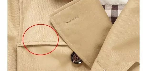 风衣肩前,有多出的一块布,叫做Gun flap(枪皮瓣)。这块布在战时主要是为了垫枪的,防止枪械的后坐力冲击。现在更多得是装饰作用。