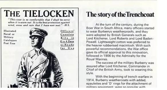 最初风衣是军队用的,所以在早期电影里可以看到很多高富帅军官都穿着风衣。