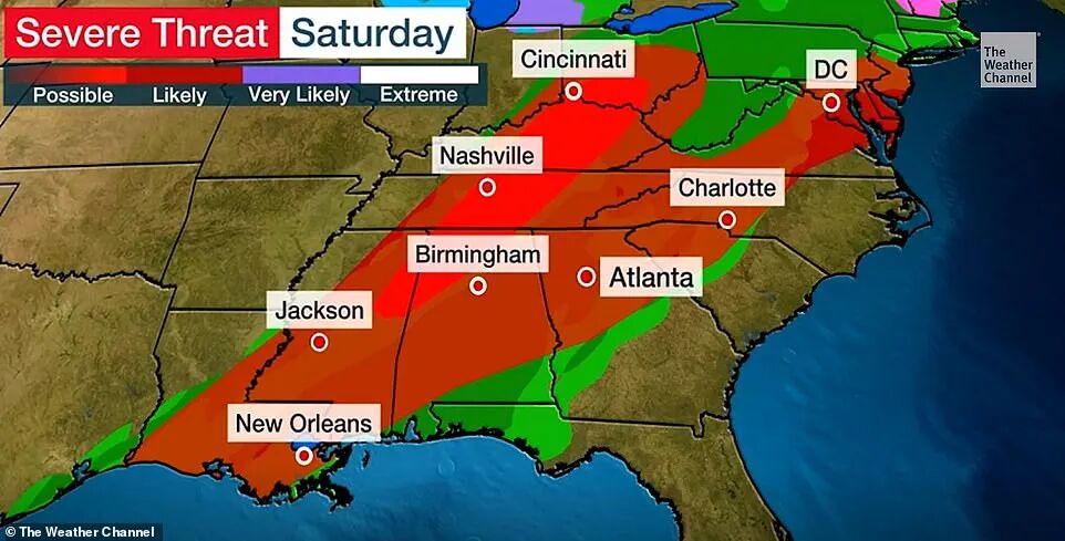 这场风暴由密西西比河谷下游一路发展到俄亥俄州中部,超5500万居民受其影响。