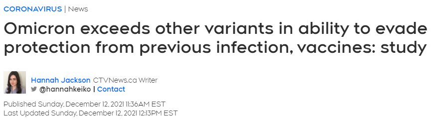 据CTV News报道,Omicron变种可能比其他COVID-19毒株,更有能力逃脱先前感染产生的抗体和疫苗产生的免疫保护。