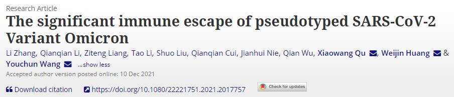 中国最新研究证实: Omicron免疫逃脱能力最强!