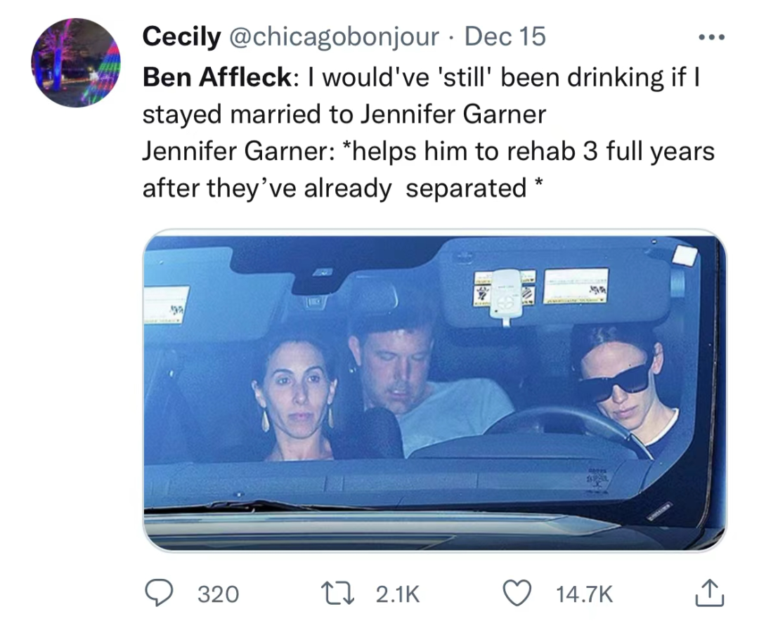 一边是“本尼弗”兜兜转转17年后还能再续前缘,粉丝们也都送上了祝福,但又何必另一边公开讲前妻的坏话呢?