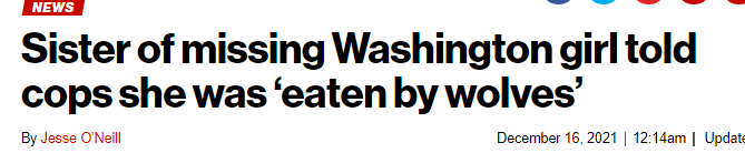 “妹妹被狼吃了”:父母隐瞒5岁幼女失踪1年 还编故事欺骗长子和次女