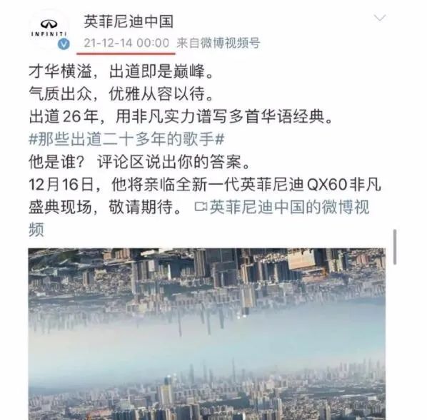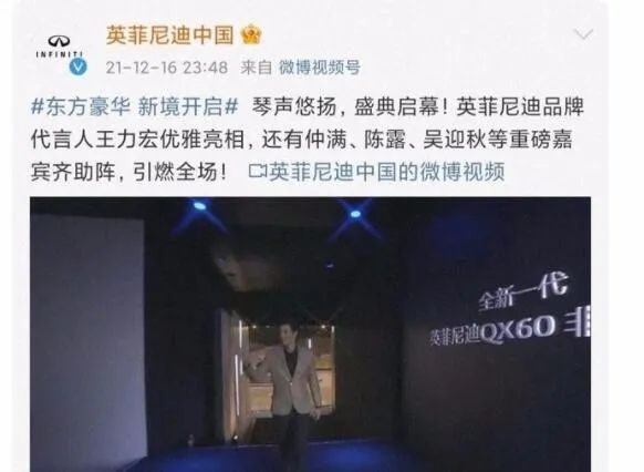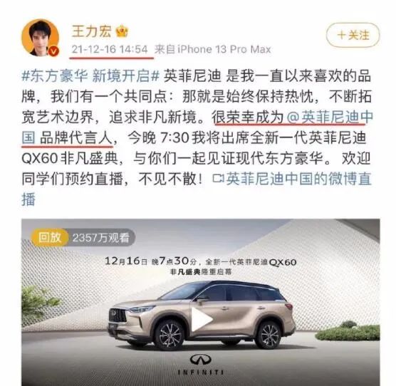 而就在12月14日,英菲尼迪才刚开始为王力宏的代言预热。