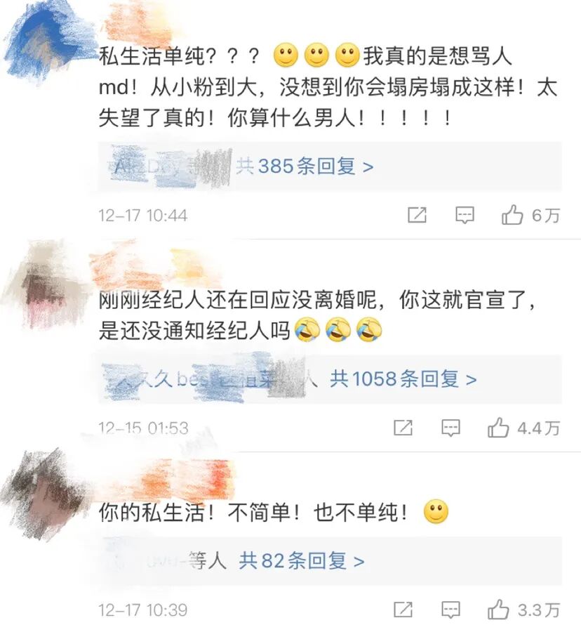 吃瓜网友们表示: 图片来源:微博 控诉三:混乱私生活、出轨、召妓,你的十字架我不给你背了!