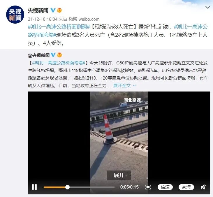 突发!高速公路桥面发生侧翻…致3人死亡!有车辆及人员被埋压