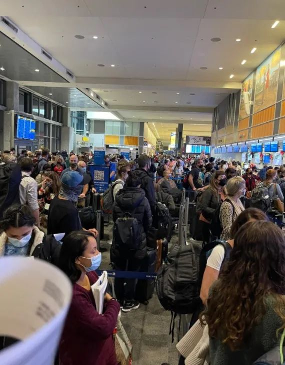 还有在旧金山机场的网友爆料称,光是一个安检队伍就有数千人排队!