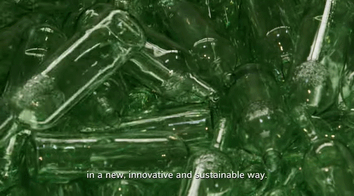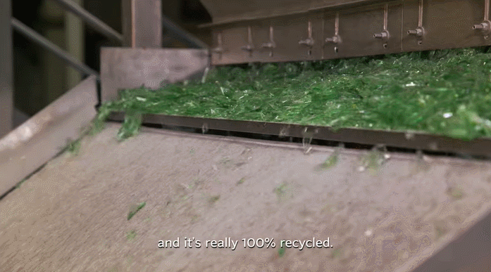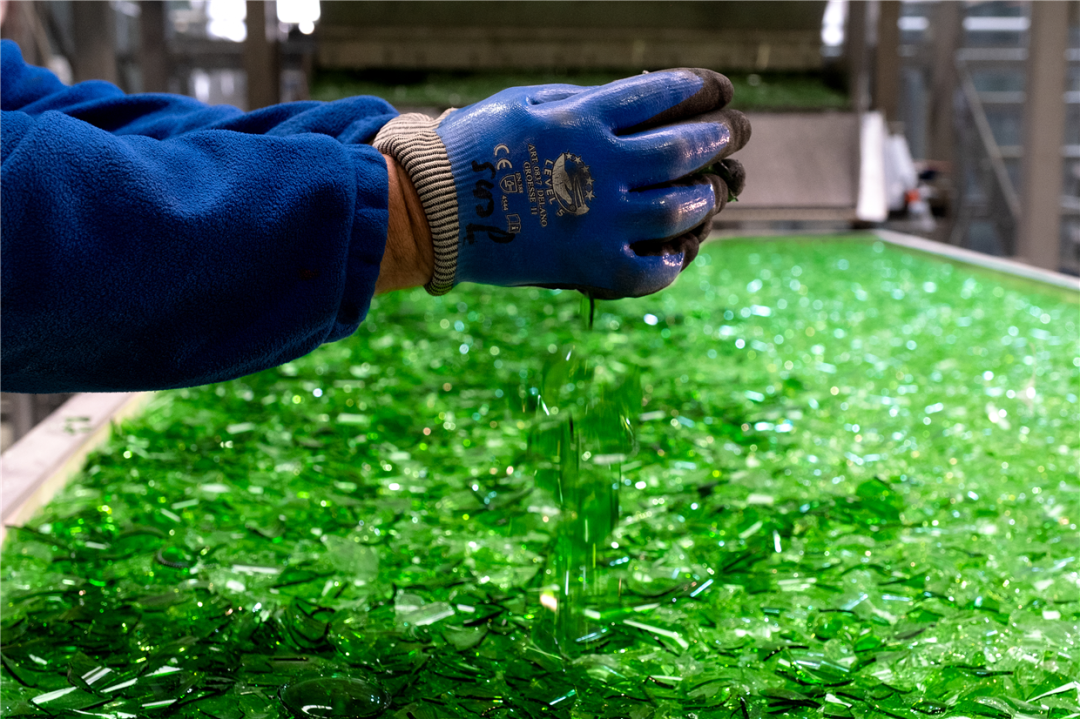 而其中所用的玻璃渣就取自最为普通的绿色与透明色的啤酒瓶,由位于德国的马格纳玻璃工厂回收再利用后生产。