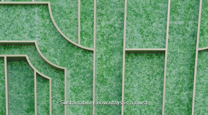 除去视觉效果,更值得我们关注的是,“玻璃渣”的运用本身不仅仅可以100%的循环再利用,也可以减少外墙的能源消耗,比传统外墙光污染减少了一半以上。