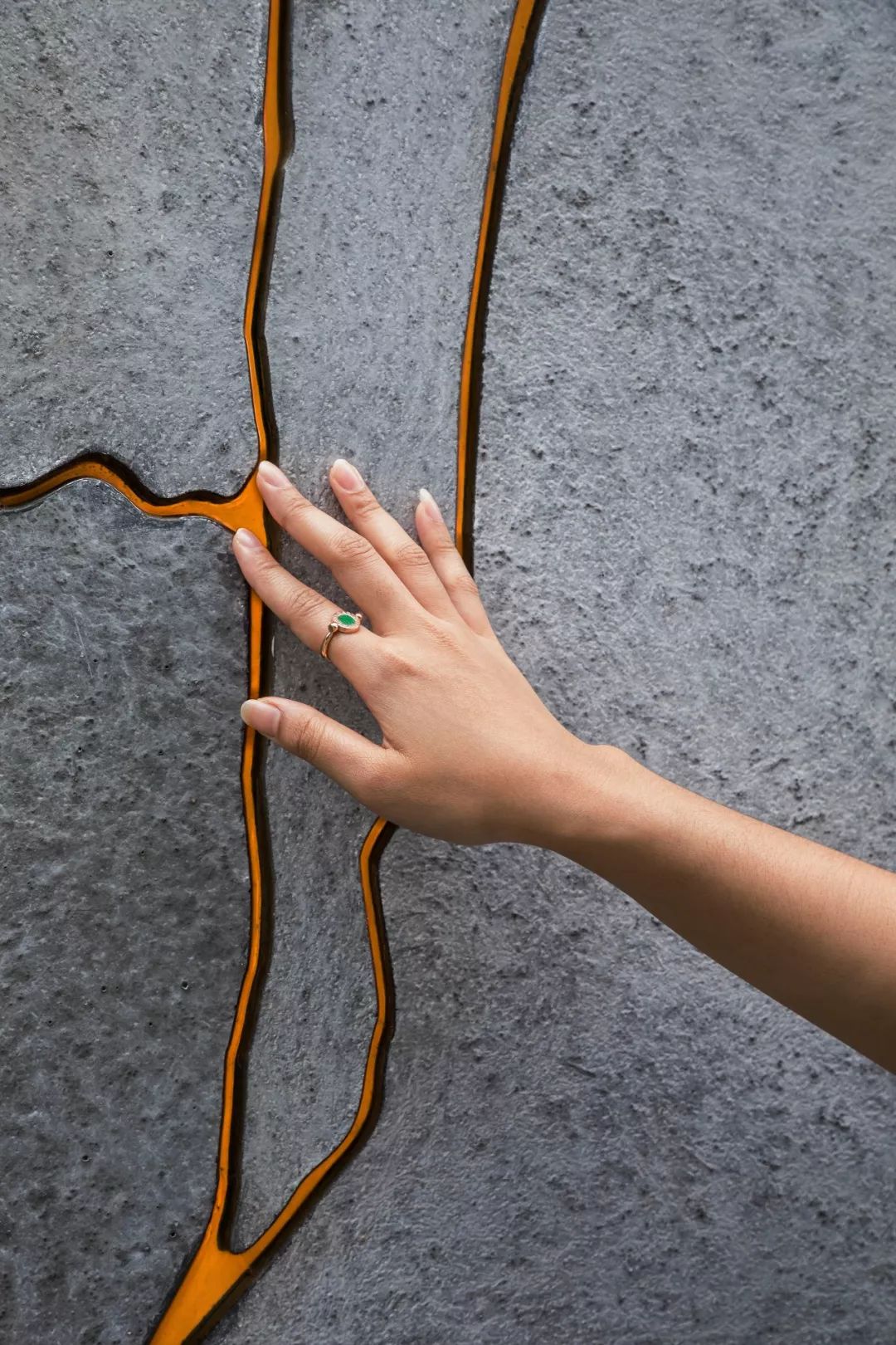 而MVRDV将这个窗套元素与宝格丽珠宝特有的构成相结合,设计出的带有开裂效果的墙面,展示着宝格丽珠宝与建筑材料之间的联系。