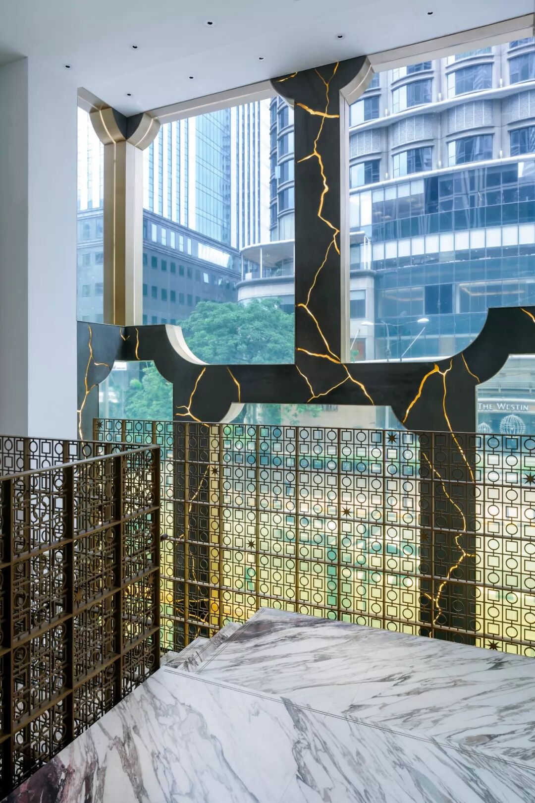如果再看向细节,会发现这块巨大的“翡翠”就像普通宝石一般,被镶上了金色黄铜饰边,高贵典雅,确实如MVRDV所希望的那样——更好的融入上海,致敬传统文化。