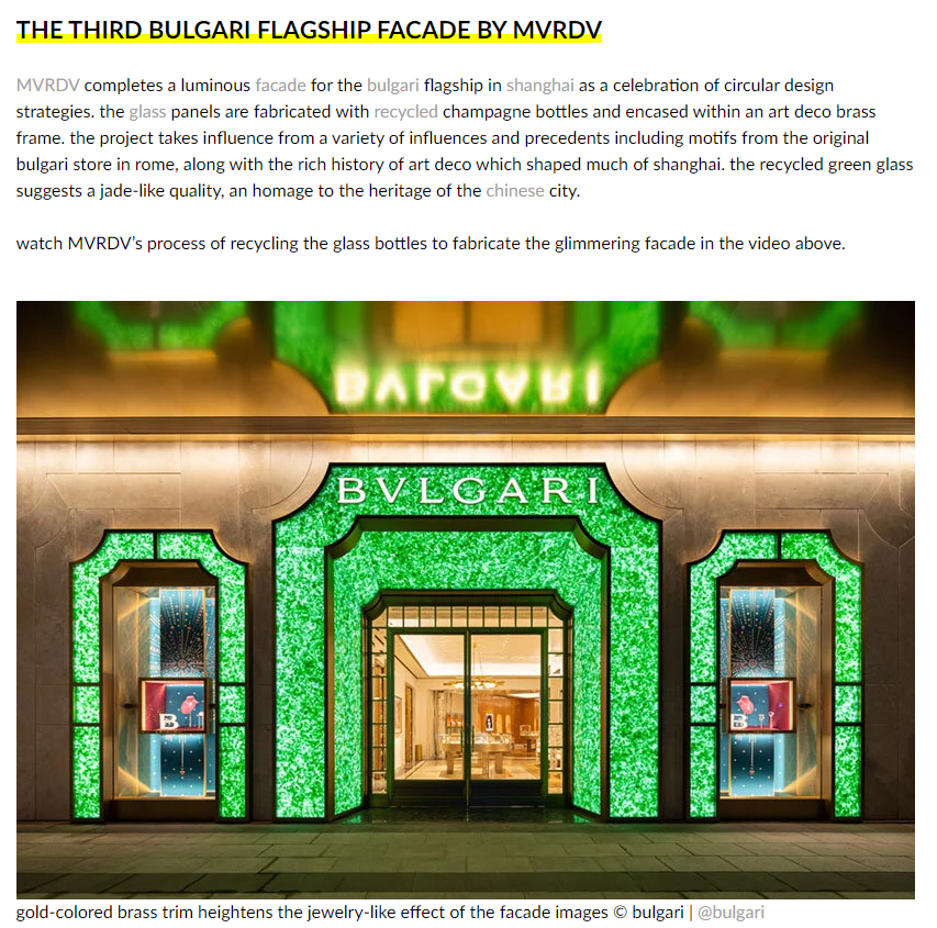 那么,除了这次位于上海的宝格丽店铺,MVRDV与宝格丽前两次的合作,也可谓是精彩至极。