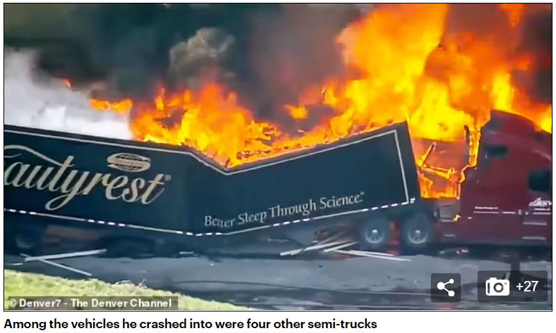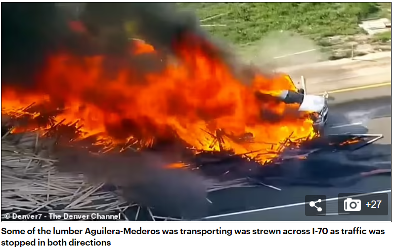 2019年4月25日,事故发生时,Rogel驾驶着一辆18轮半挂卡车,货车上装满木材,正从科罗拉多州莱克伍德位于山上的70号州际公路上向东行驶,时速约为85英里。