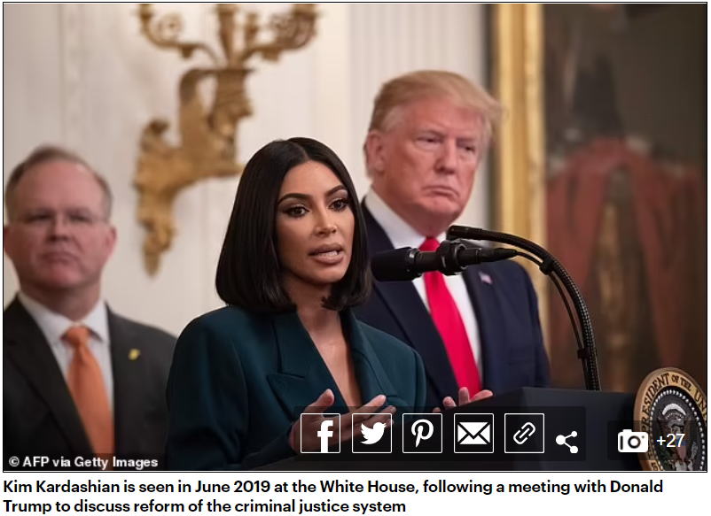 卡戴珊正在学习法律并且一直以来对监狱改革直言不讳,由于名人效应,卡戴珊现在已经把自己塑造成为全美最有影响力的法律制度改革活动家之一。早前,她利用自己的社交平台帮助释放了十多名联邦囚犯。