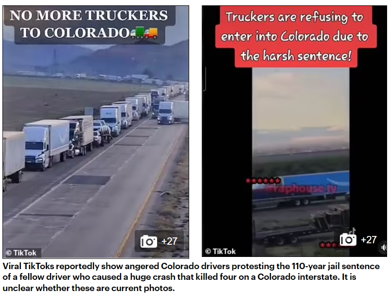 卡车司机们拒绝进入科罗拉多州,以此来谴责这种严厉和不公平的判决。
