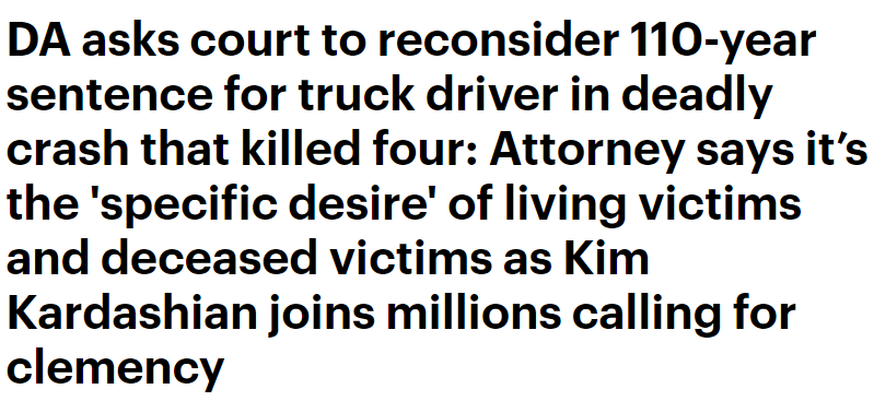 卡戴珊说:“据我了解,这位司机并没有酒驾或者是有其他犯罪情况;仅仅是因为当时货车的刹车失灵了。”