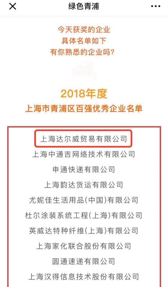 据上海市青浦区官方微信公众号“绿色青浦”2019年发布的消息显示,上海达尔威曾上榜上海市青浦区百强优秀企业名单,公司2018年度缴税总额高达21亿元人民币。微商的吸金能力一度令市场哗然。