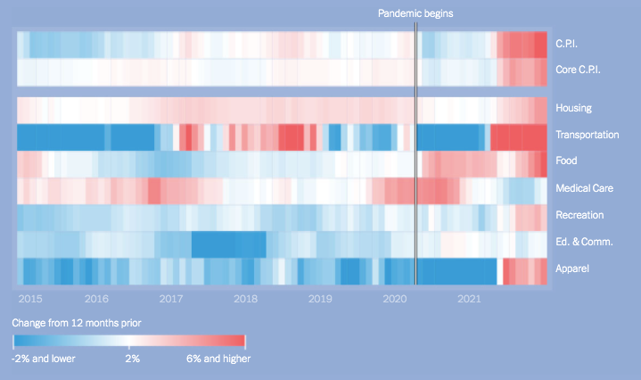 提高工资是受欢迎的,更高的价格则不然。11月,物价同比上涨6.8%,是1982年以来的最大涨幅。飙升的油价和汽车价格使运输业受到的打击尤其严重。更糟的情况可能还在后面,由于复杂的统计原因,占消费者物价指数42%的住房价格还没有完全反映在指数中。所有这些通胀已经抵消了工资的增长。截至11月的12个月里,美国人的平均“实际”收入下降了1.9%。