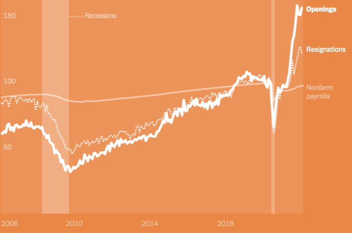 尽管出现了新冠疫情,但美国经济仍在继续复苏。10月份的1100万个空缺职位让740万积极寻找工作的失业美国人“相形见绌”。但就业率仍未恢复到疫情前的水平,部分原因是美国人辞去现有职位的人数创下了纪录。大约240万人完全离开了劳动力市场,其中许多人提前退休。随着失业率降至4.2%,接近52年来的最低水平,美国经济需要其中一些美国人重新进入就业市场。