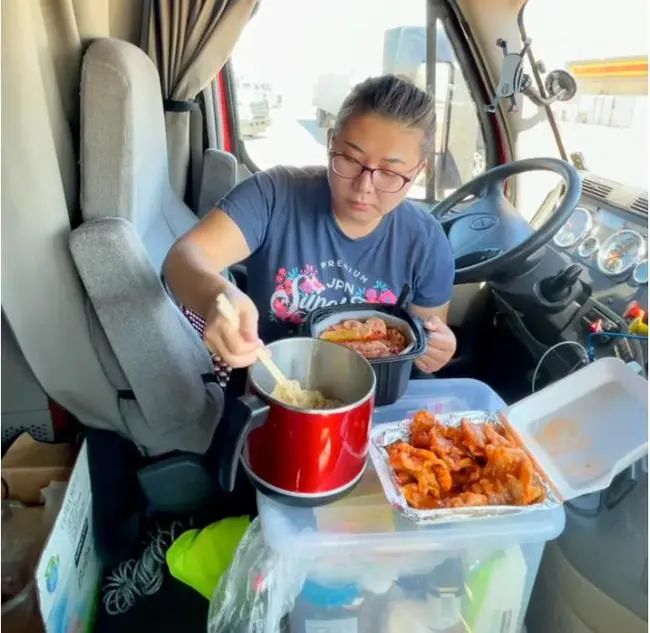 如果是2个人开,基本上是人轮休车不停地跑,除非停车加油上厕所,吃饭睡觉都在车上,每次出发前要准备一个星期的菜,然后在车上用电饭煲煲饭,用微波炉热菜,每天都吃旧菜,时间长了很难受。如果不想吃旧菜,只能到高速公路服务区买汉堡之类的快餐,中途是不会轻易离开高速公路的。