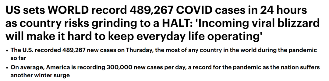 破世界记录:美国单日新增近50万!专家预警:美国人日常生活或陷入瘫痪!