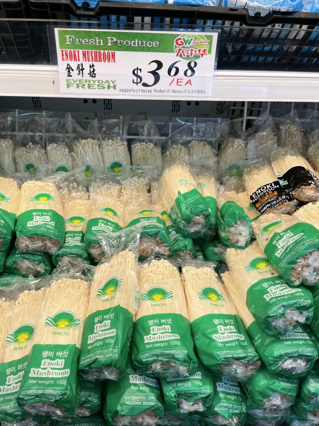 上图是新年第一天,某华人超市金针菇菜价,以前是0.99三包,现在是3.68一包,整整涨了10倍。