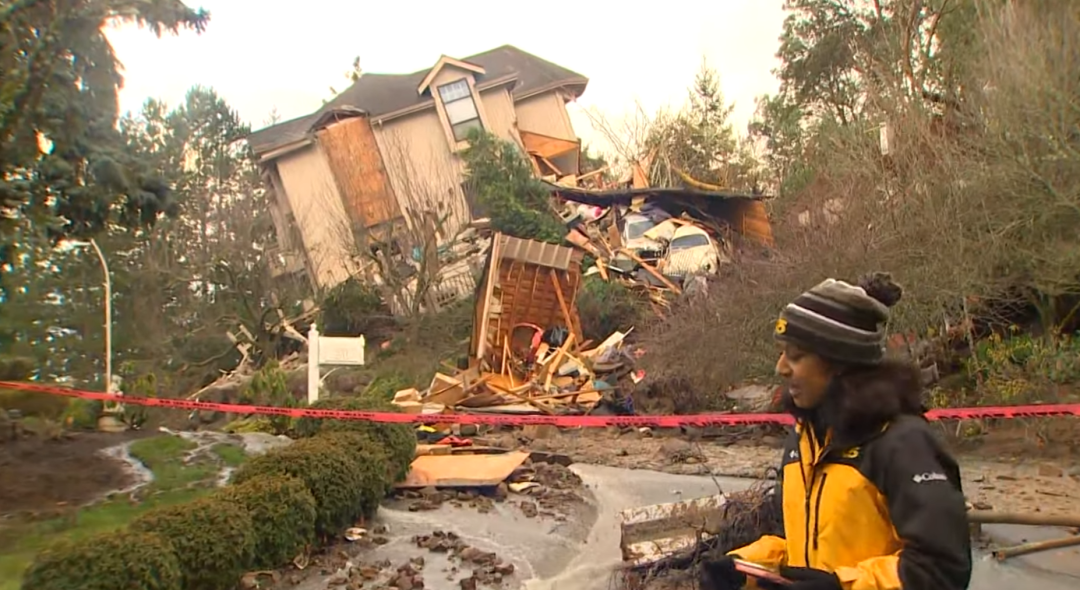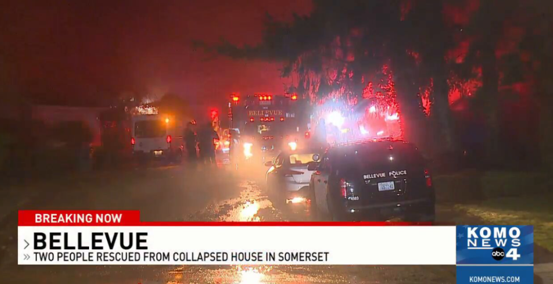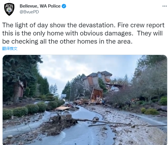 Bellevue一栋房子从地基滑落塌方,2人1狗成功逃脱....48人紧急疏散