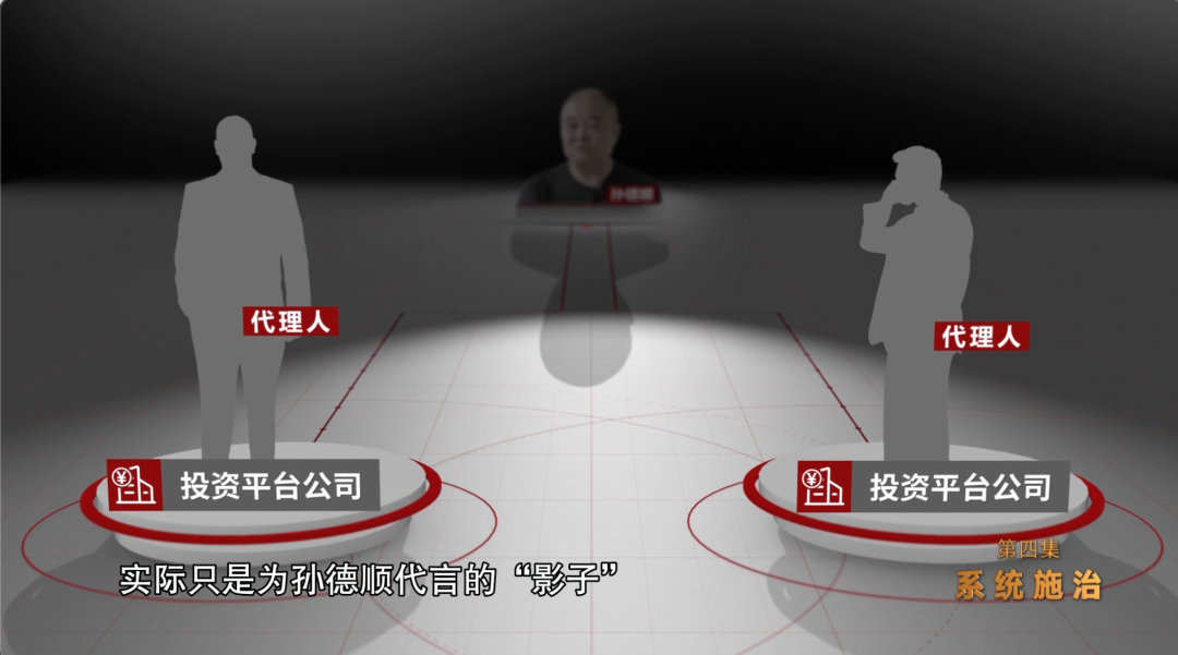 中央纪委国家监委机关工作人员 樊祥鹏:他有一个特点就是不收现金,他认为收现金太低端了,太简单粗暴了。他利益兑现的方式非常专业化,做了层层掩盖,用特有的金融手段和产品去掩盖。 调查发现,孙德顺是利用“影子公司”、借助金融手段来完成利益输送的典型,其专业化、复杂化程度相当罕见。他安排两名老部下作为代理人,开设了两家投资平台公司,两家公司的代理人,实际只是为孙德顺代言的“影子”。