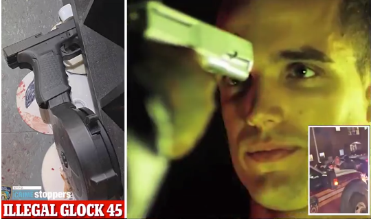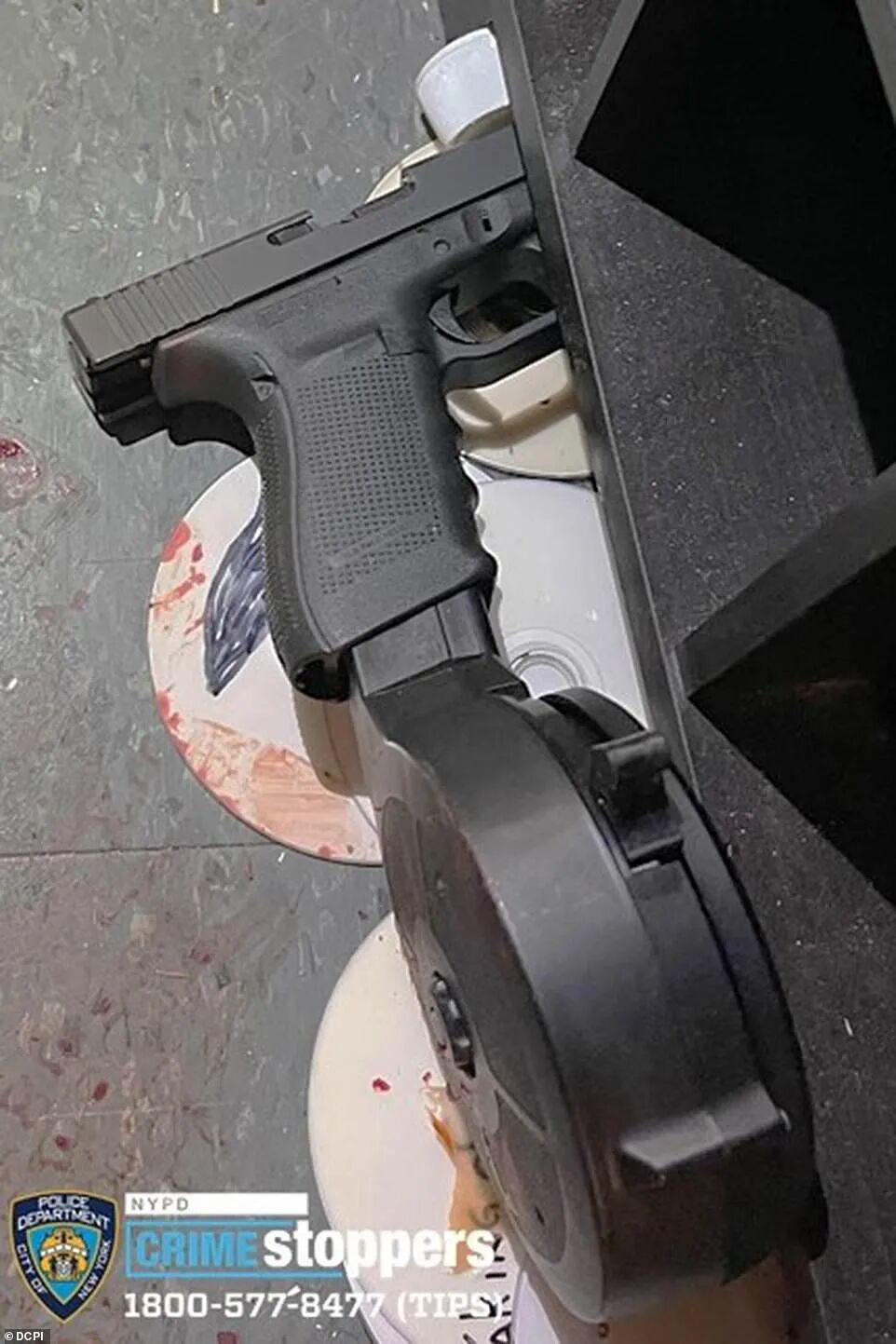 纽约警方还发布了一张沾满血迹的非法格洛克45手枪的照片,该枪配备了一个高容量的40发弹夹,也是昨晚嫌犯使用的武器。