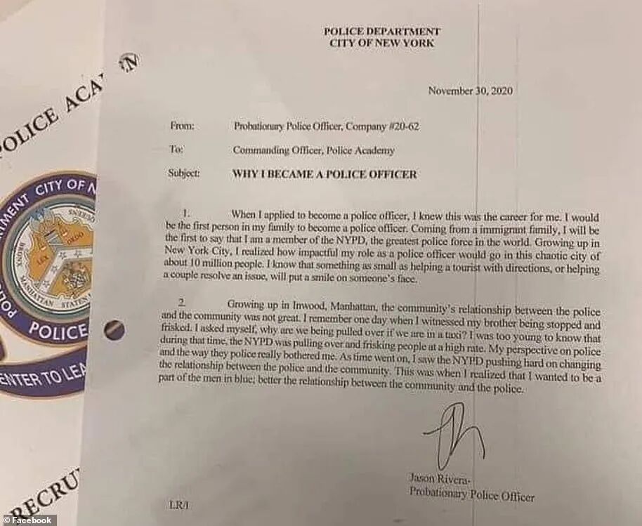 22岁的新秀警察杰森-里维拉虽然被紧急送往医院,但是已经宣告死亡,据悉这个年轻人在疫情期间才刚刚加入纽约NYPD,他在警校在一篇“我为什么要当警察”的文章中写道:自己来自一个移民家庭,自小生长在因伍德(Inwood);深知警察和社区有很深的鸿沟,人们被警察拦截搜身是家常便饭。