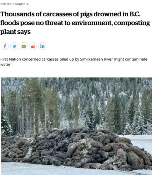 现在温哥华的公司 West Coast Reduction 也持续进行着洪灾后的大量尸体清理工作,其中包括2000头猪尸。