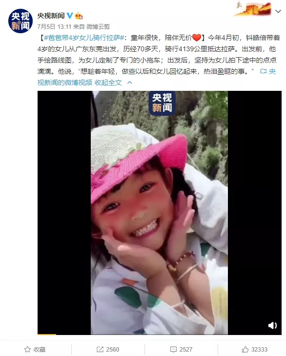 因为他做了一件了不得的事——带着4岁的女儿兜兜,花了整整71天,从东莞骑着单车到了西藏,全程共计4139公里。 他说:“我可能没能力给女儿留几套房子,但我想留给她的是世界,是爸爸陪伴她去探索世界的回忆。”