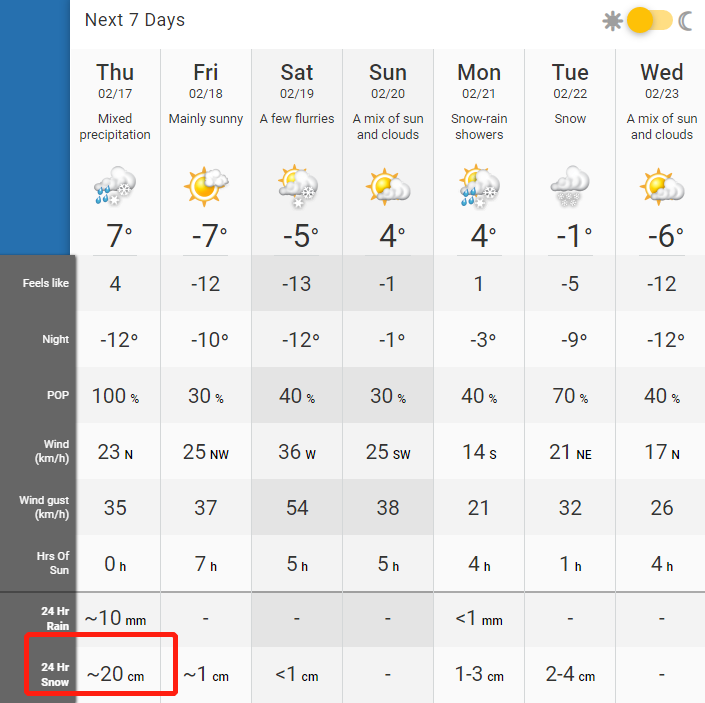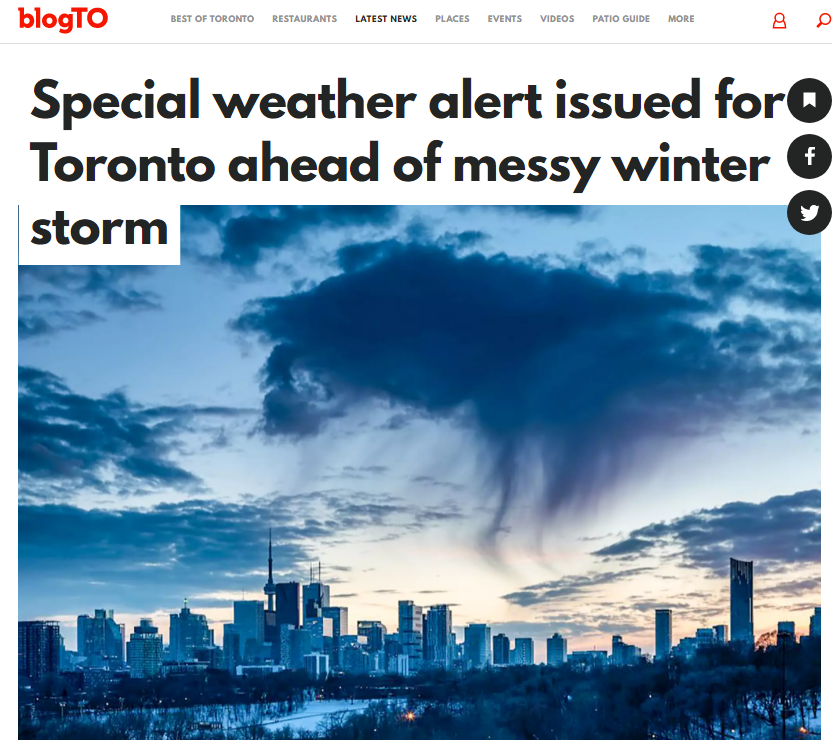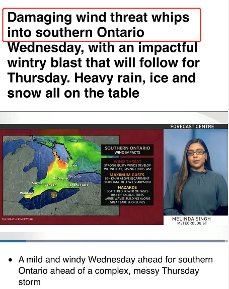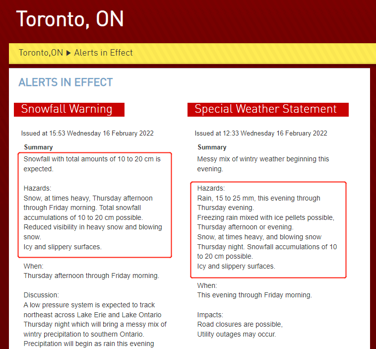 多伦多红色双警告!20cm暴风雪+冰雨+强风+降温轮番来袭!天气乱了
