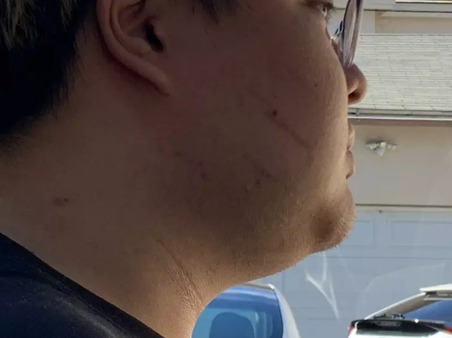 小刘脸上伤口清晰可见
