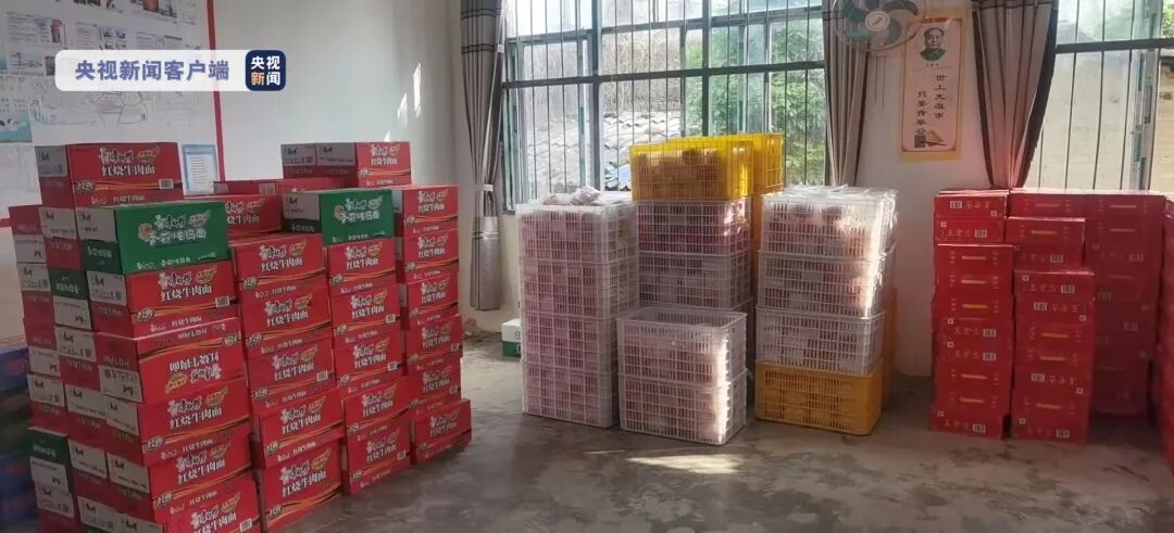 救援物资运达救援现场,含面包200斤、雨鞋200双、手电280只、铁铲100把、八宝粥90箱、矿泉水120箱、帐篷133顶、冲锋衣200件、折叠桌椅50套、雨衣550套、照明灯4台、充电宝550个、防护口罩2万只、通用手套500双、移动照明10套、消毒粉50千克、消毒液100瓶、消毒酒精200瓶、牛奶70箱。