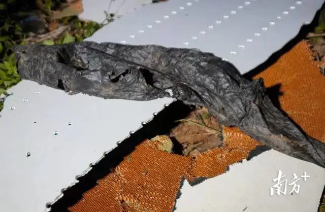 在坠机核心区域,搜救人员发现了飞机残骸及失联人员的钱包、身份证、银行卡等随身物品,其中一张纸片上写着“平安扣”、“岁岁平安”等字样。