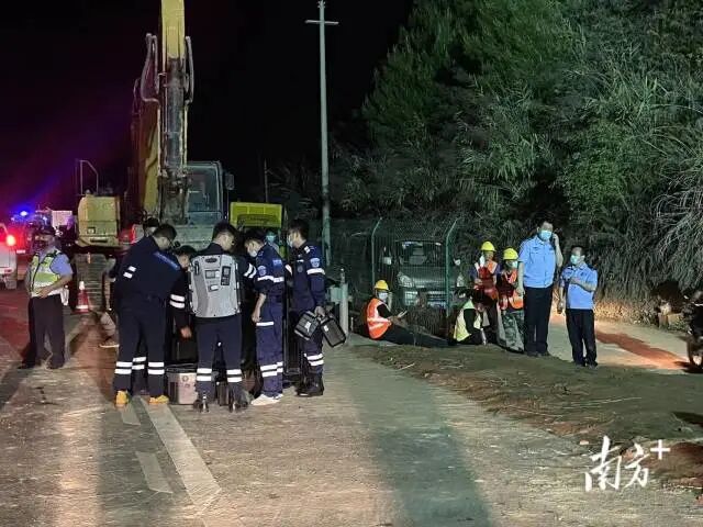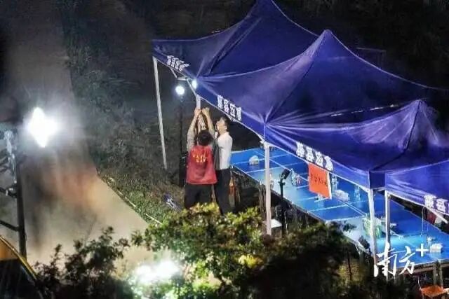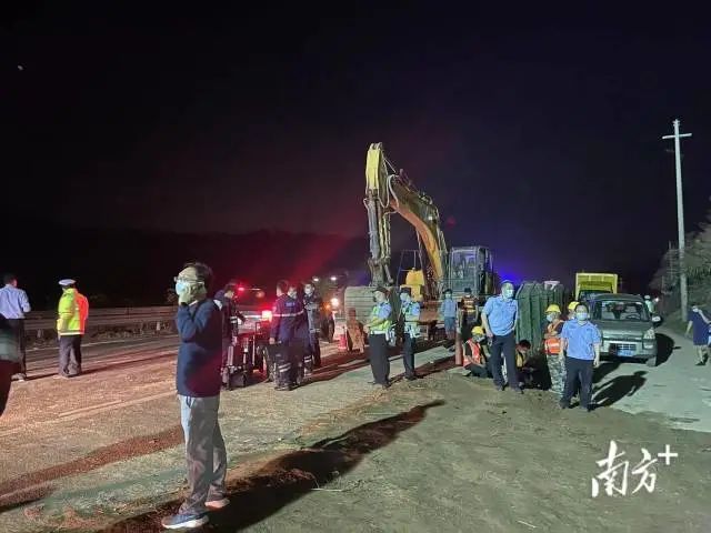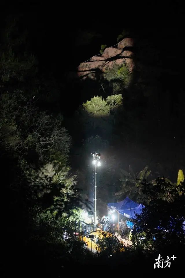 21日晚,记者从广西梧州藤县莫埌村向南步行20分钟左右,进入救援核心现场。深夜,沿途村庄依然灯火通明,前来参与救援的应急、消防、公安、医疗人员来往不止。