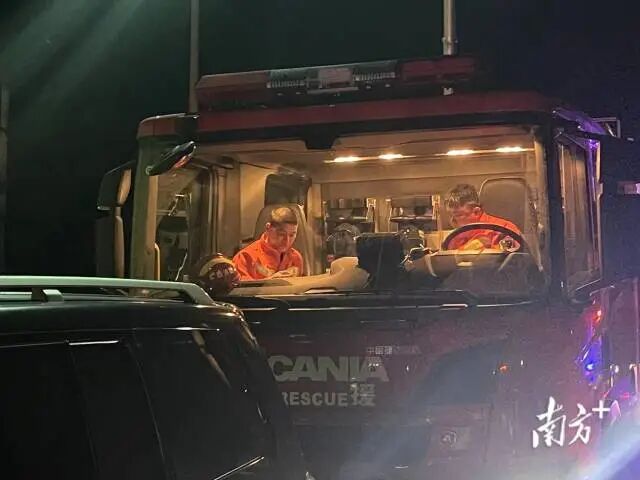 现场一片漆黑,事故地点的入口处已围起一道警戒线。S40苍硕高速公路沿途,遍布消防车、救护车、警车、公务车等,形成了数公里长的车队。