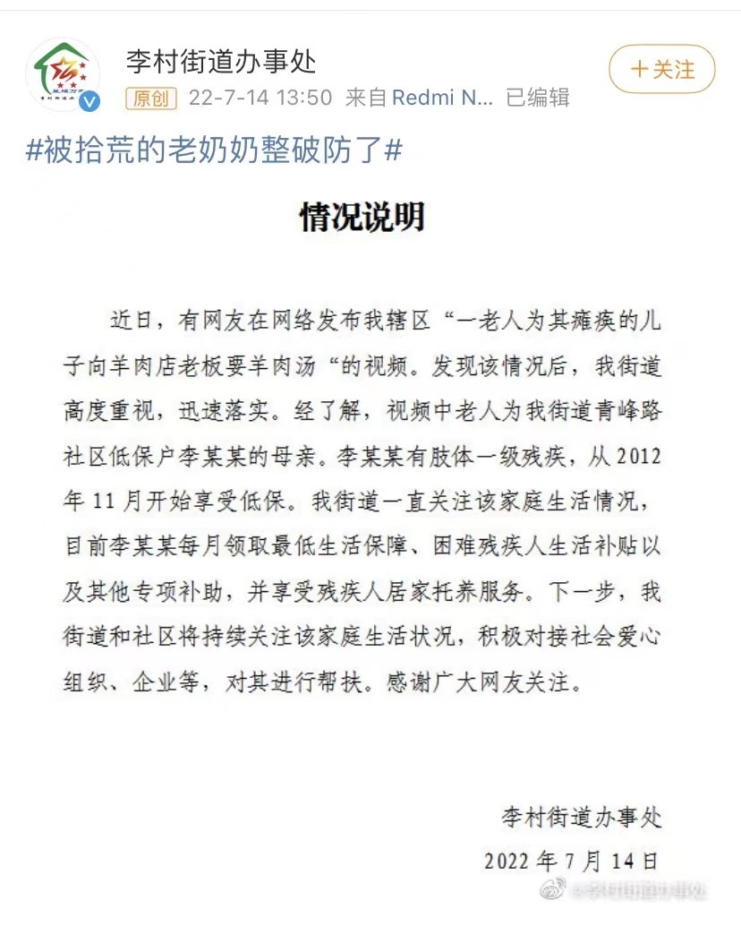 一拾荒老人为瘫痪多年的儿子讨剩羊肉汤,其子系北大硕士